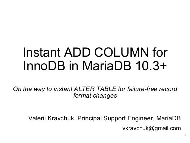 Instant Add Column For Inno Db In Mariadb 10 3 Fosdem 18 Second