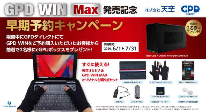株式会社天空 今夏発売gpd Win Maxを本日6月1日より先行予約受付開始 先行予約特別価格や抽選でegpuボックスが2名に当たる予約キャンペーンを実施 株式会社天空のプレスリリース
