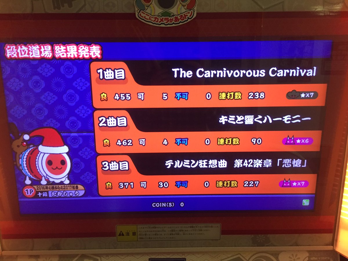 たむしゅう Twitterissa 太鼓の達人 レッドver 段位道場 外伝 挑戦 ナムコオリジナル 一級 初段相当 難 鬼 The Carnivorous Carnival キミと響くハーモニー テルミン狂想曲 第42楽章 悲愴 条件 魂ゲージ97 以上 コンボ数500以上 可の数425未満
